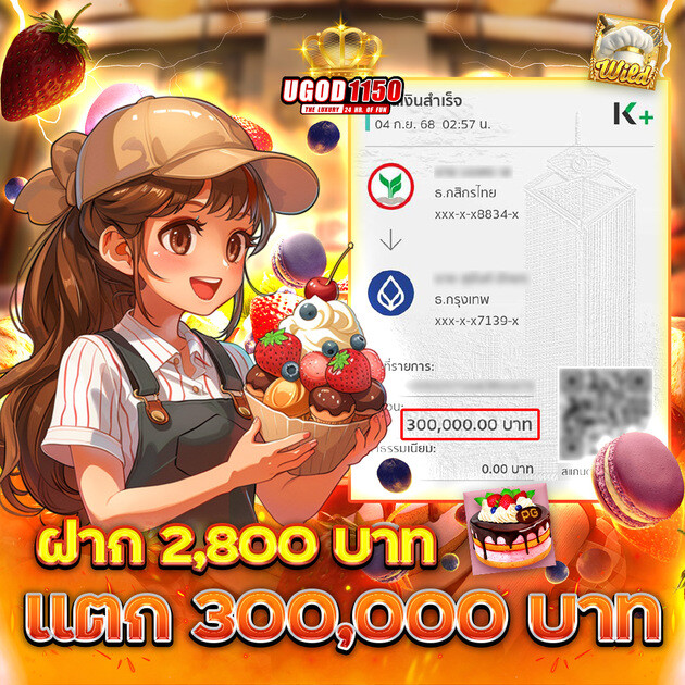 รับโชคชุดใหญ่ ฝากเเค่ 2,800 เเตกไป 300,000 จุก ๆ